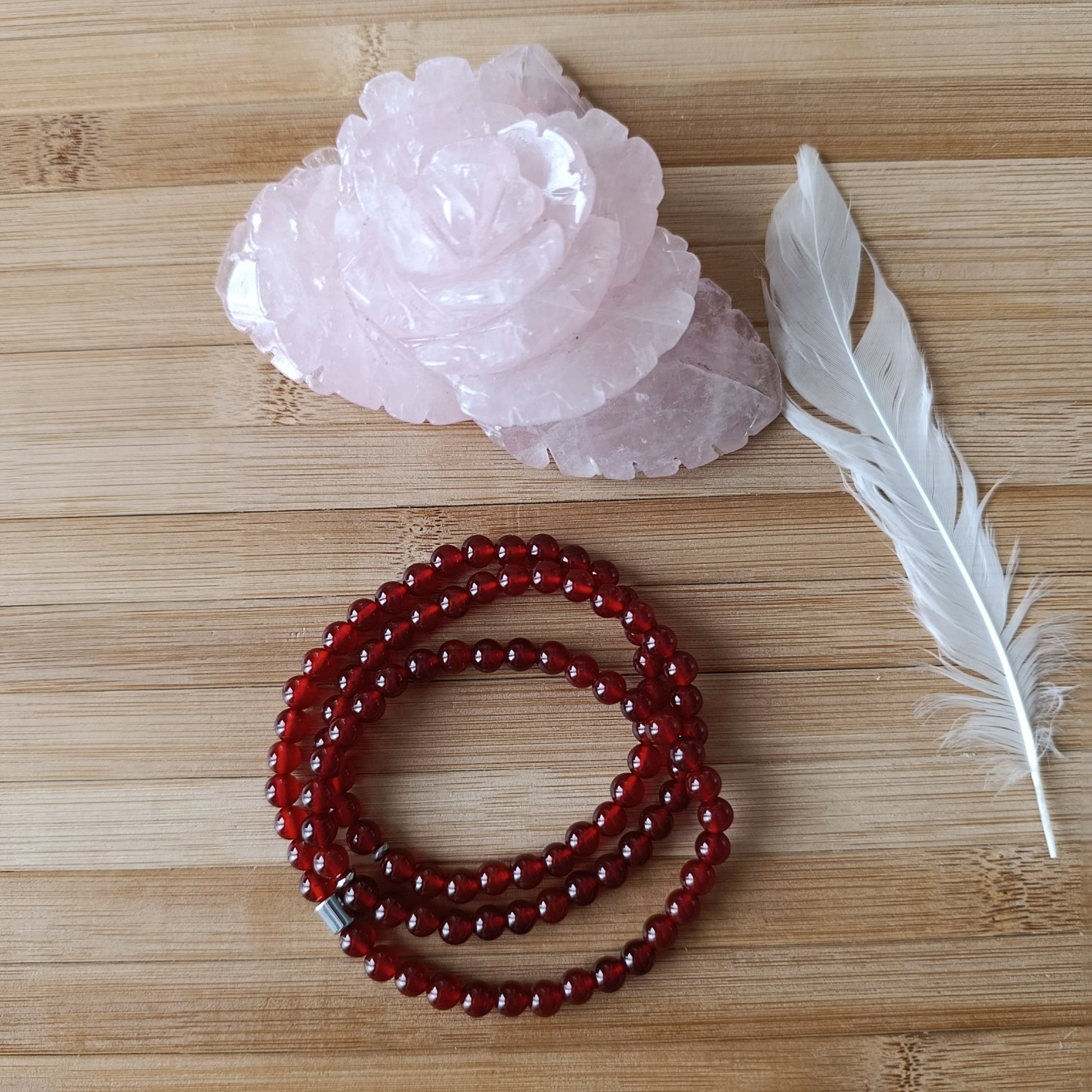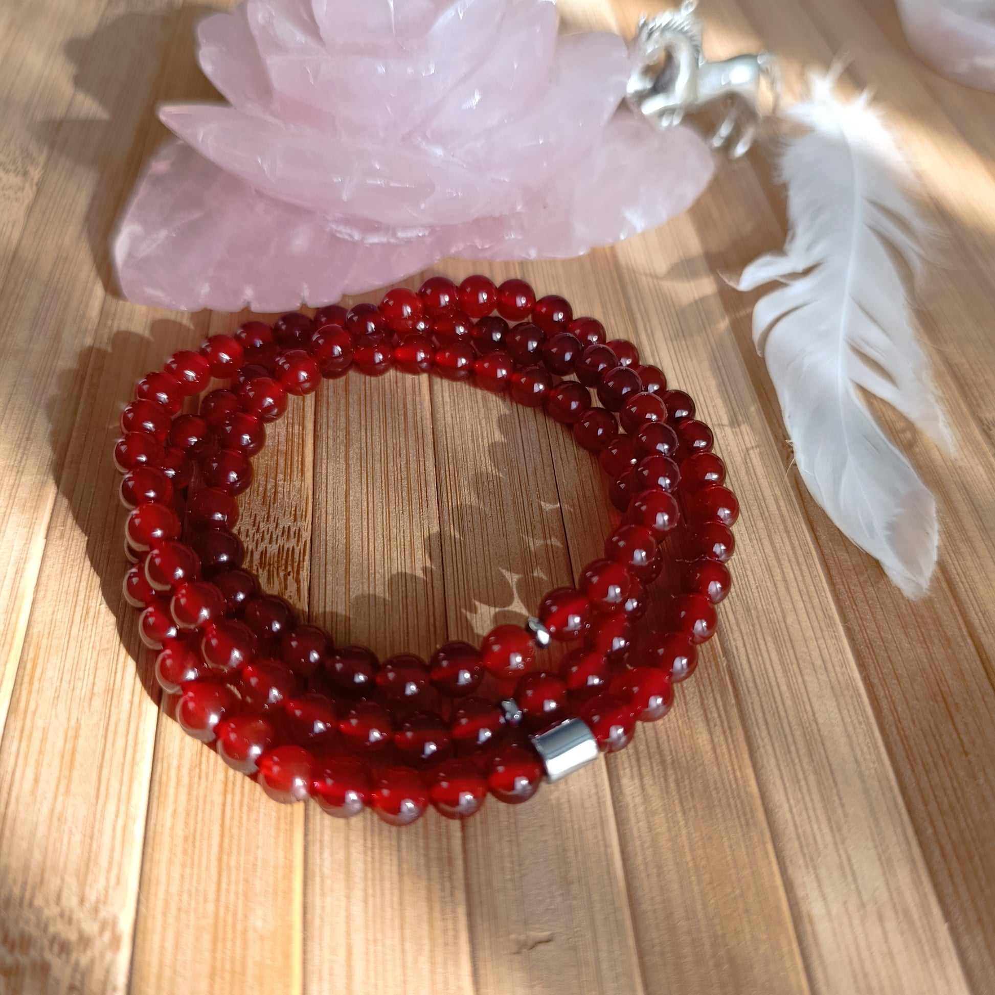 99 adet 6 mm akik taşlarıyla ve hematit taşlı detaylar ile esnek olarak hazırlanmıştır.