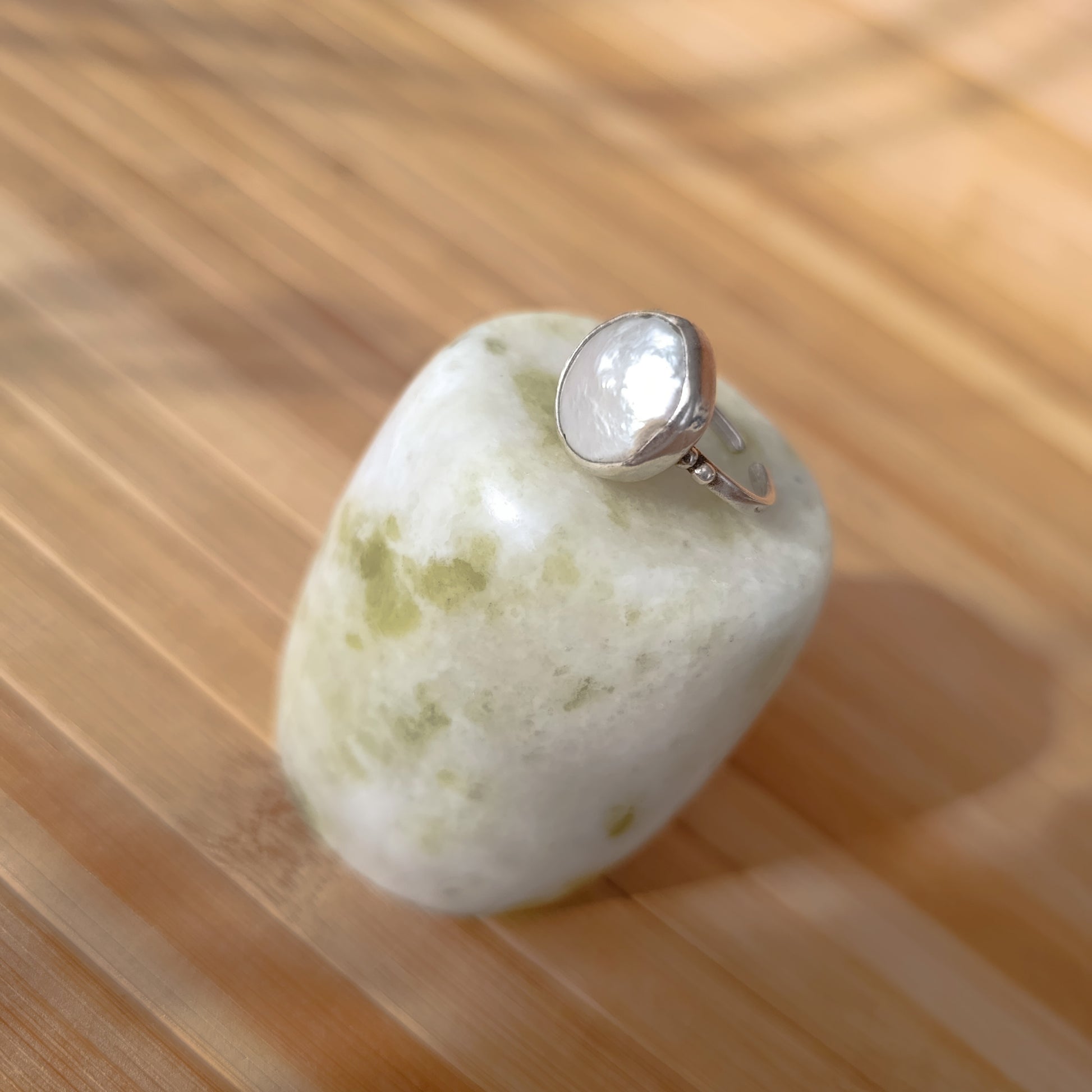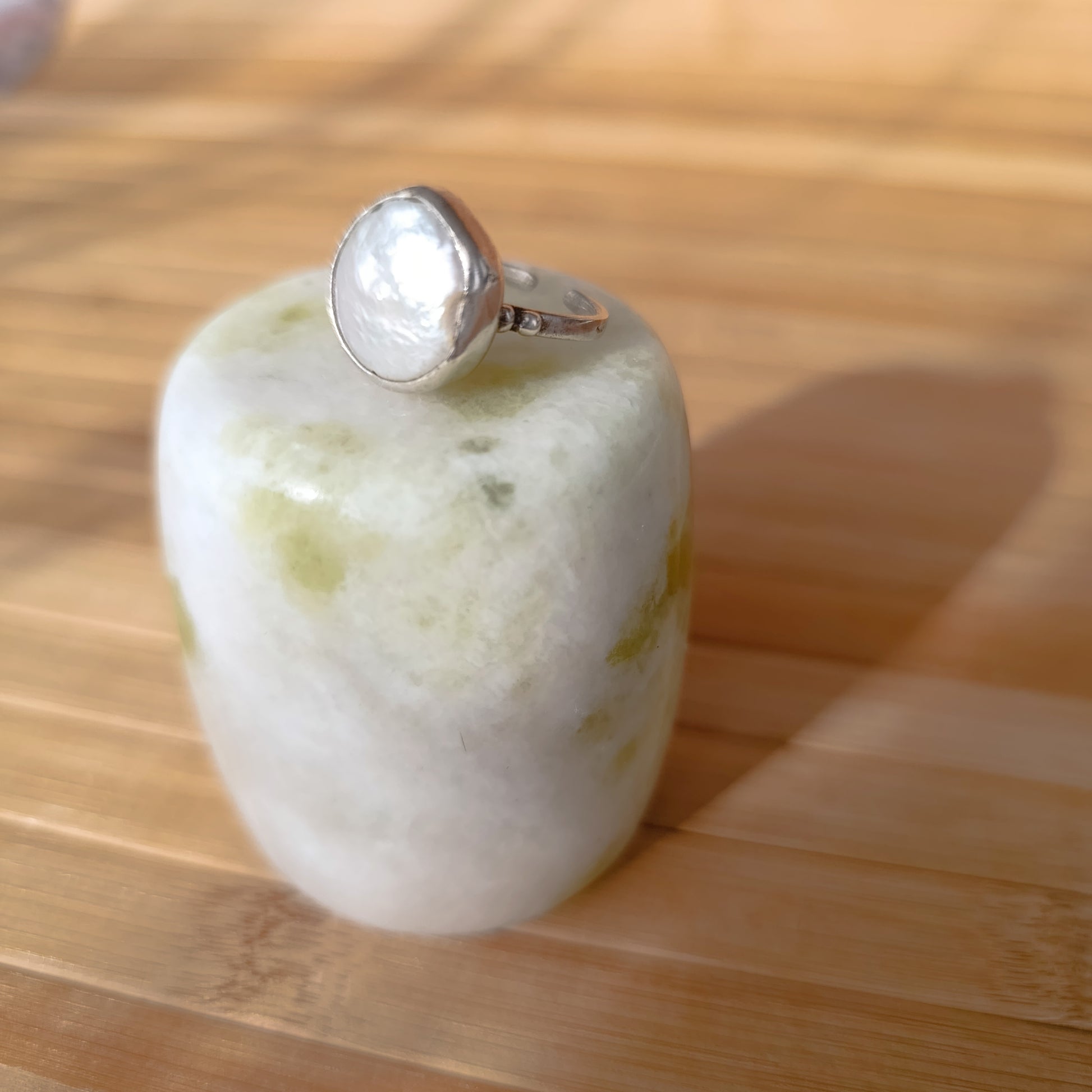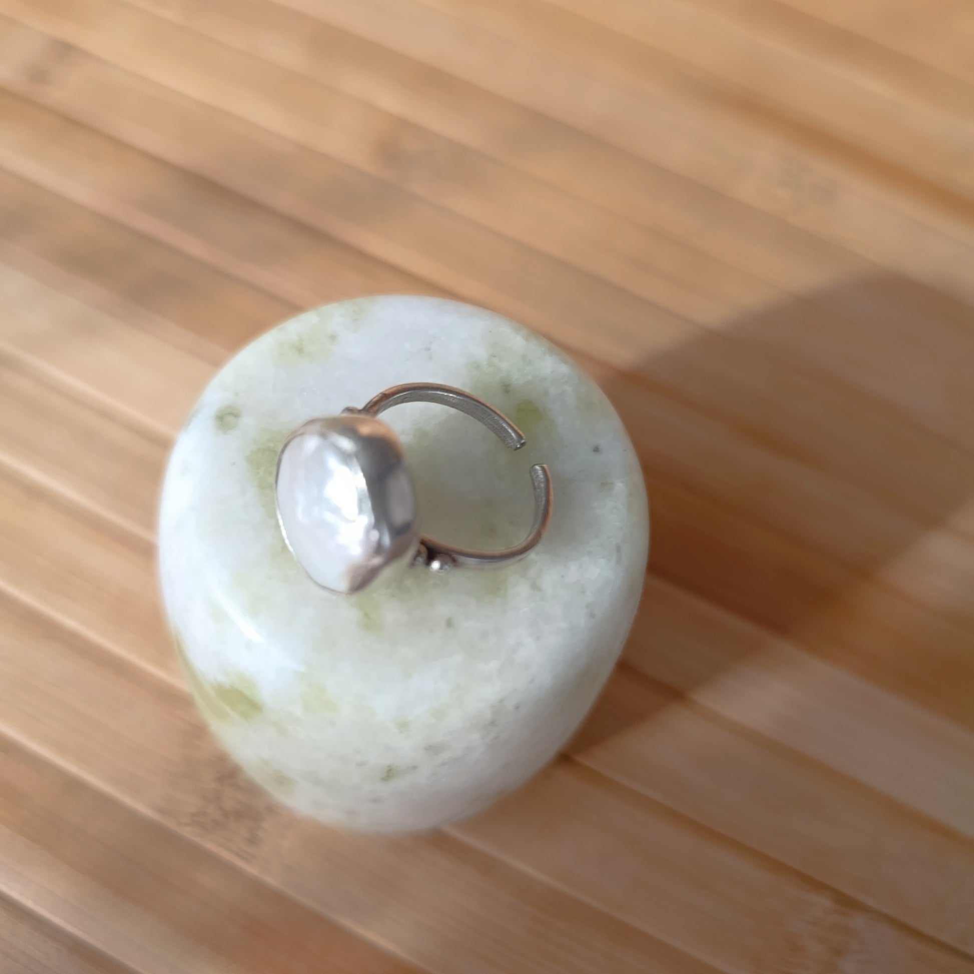 925 ayar Gümüş iri incili ayarlanabilir yüzük.